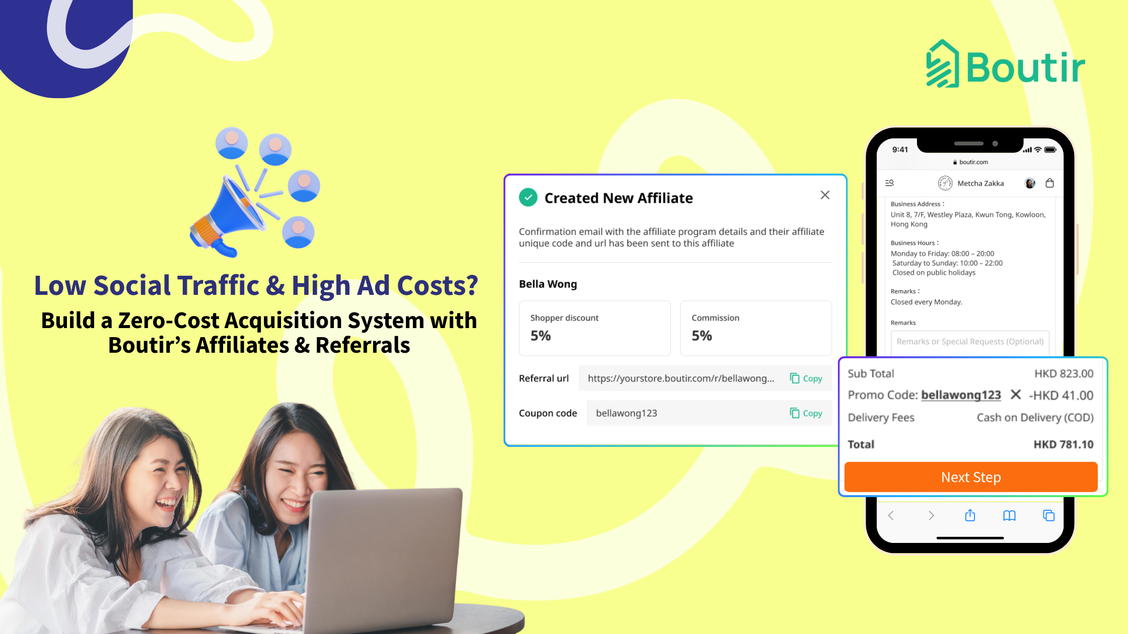 Solve your traffic woes: Tired of low social media organic traffic, sky-high ad costs, and a lack of low-cost acquisition channels? Boutir’s affiliate + referral system turns your network into a traffic and sales engine, no more wasting money on unreliable ads.