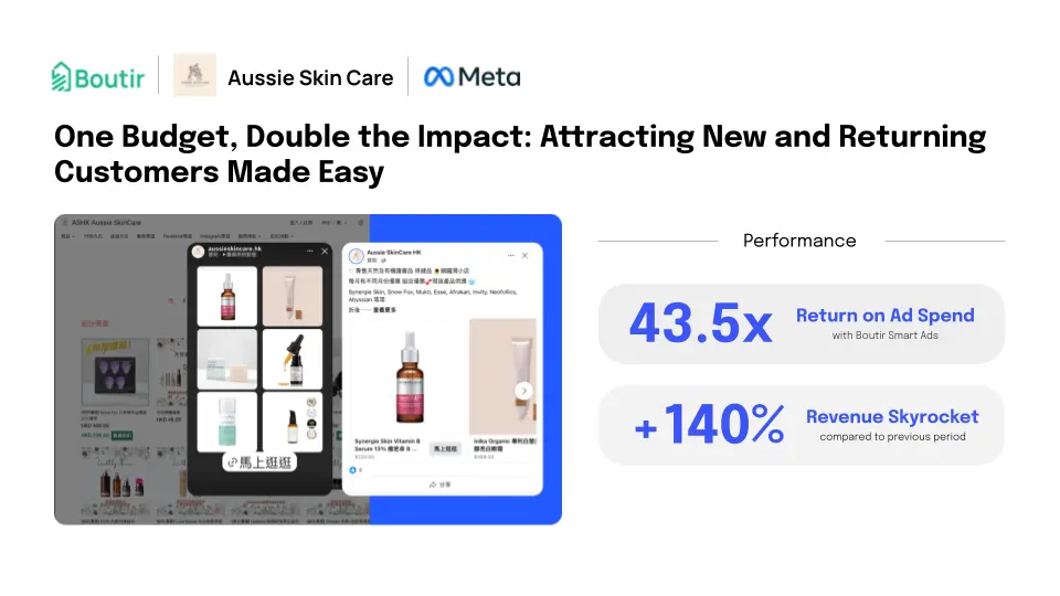 Aussie Skin Care, a merchant with limited marketing expertise, experienced extraordinary success with the Boutir Smart Ad System. Achieving an astonishing 43.5x return on ad spend, the brand witnessed its revenue skyrocket by 140%. The simplicity of the system was a major draw for Aussie Skin Care. With Boutir’s one-stop automatic ad placement, the merchant could set up ads in just a few minutes, eliminating the need to grapple with complex advertising platforms.