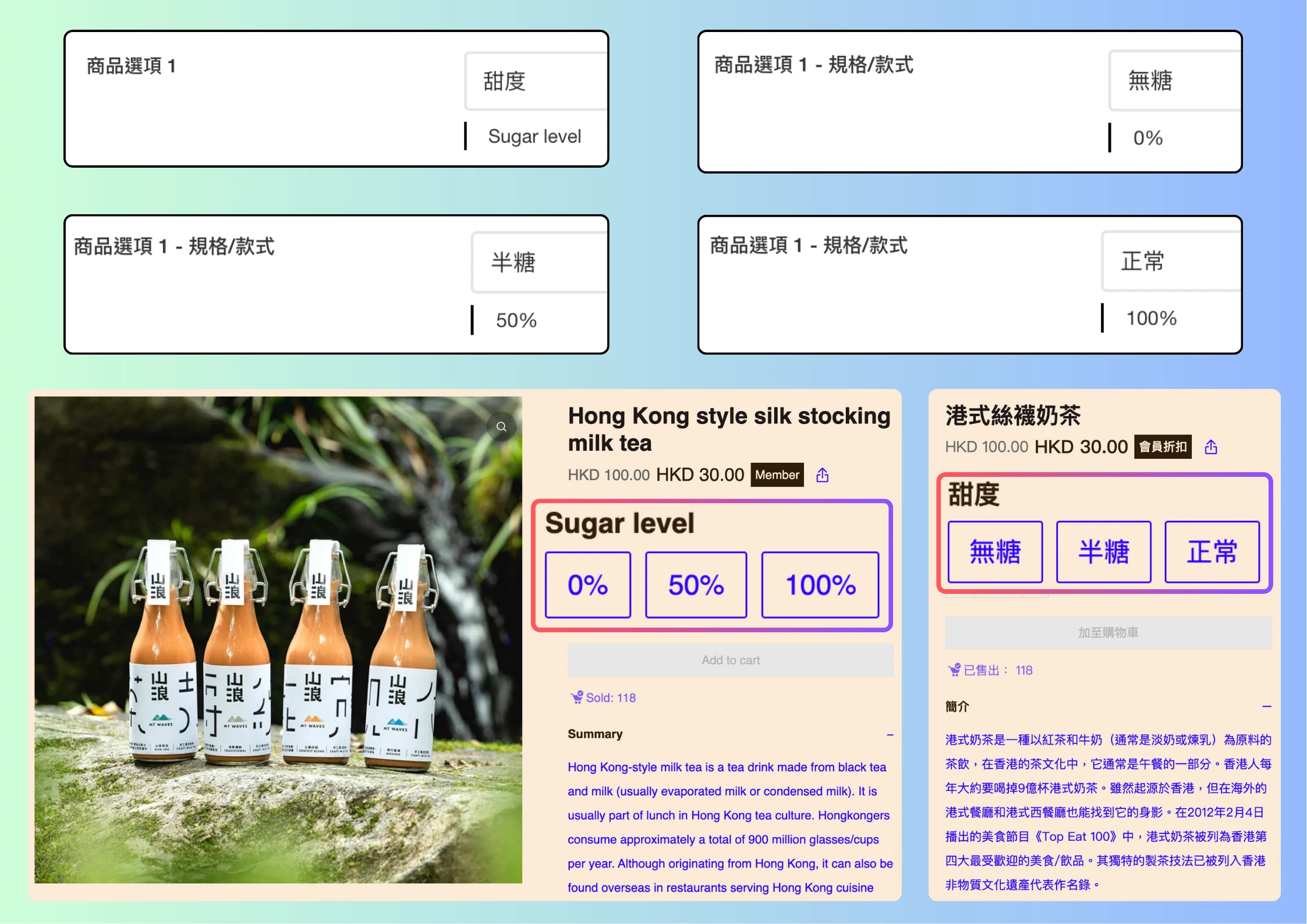 商戶現可按需要設定各國語言的商品資料翻譯內容,解決 Google 自動翻譯可能出現的錯誤用詞。