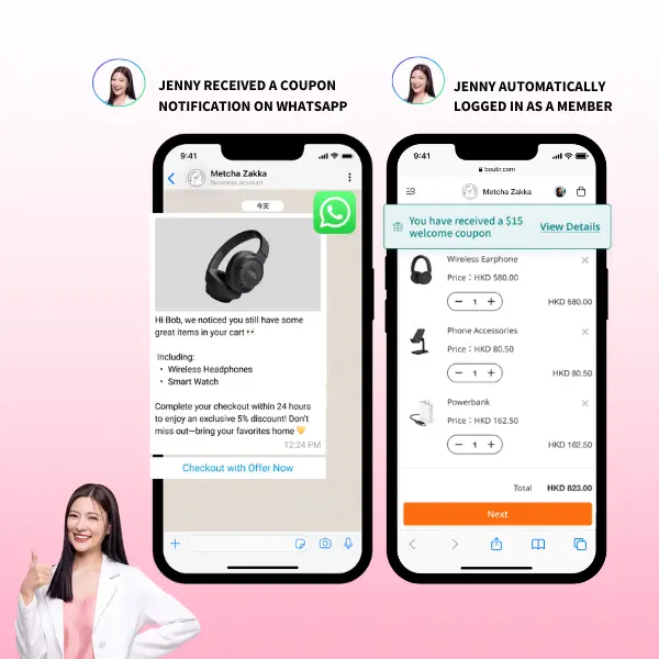 Boutir Advantage: Since Boutir syncs WABA with your store, new customers can redeem the coupon directly in their chat or during checkout.