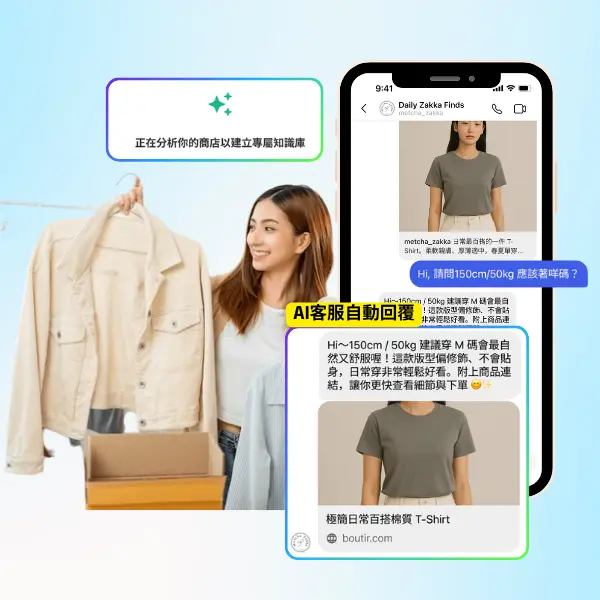 Boutir 助力「AI 24/7 智能客服」 :24 小時監測 IG 的留言和 DM,只要客人詢問「價格」、「現貨」、「優惠」等,系統會立即推送「對應商品鏈接 + 優惠資訊」。