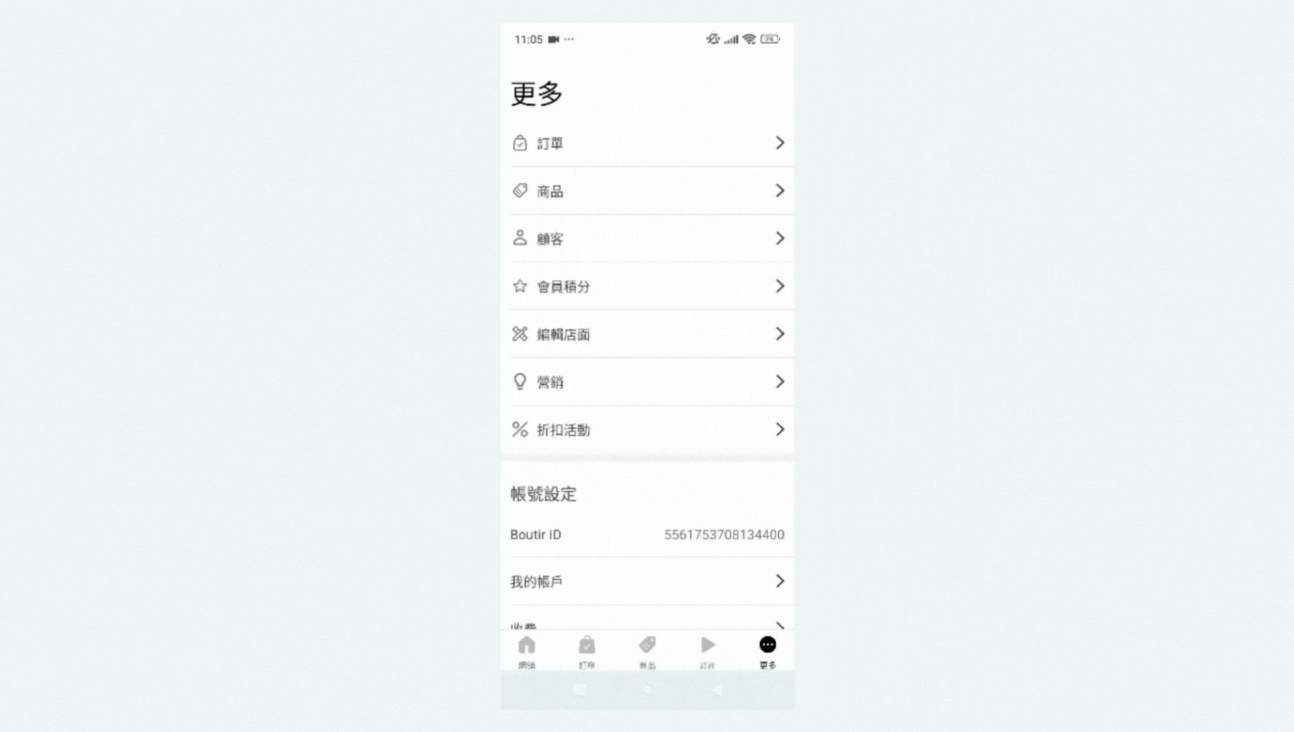 - 登錄 Boutir App,點擊「更多」中的「營銷」。