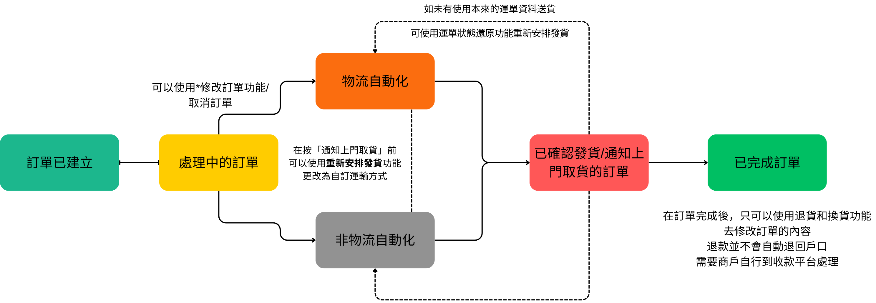 - 僅能修改「已完成」狀態之前的訂單。若訂單已完成,請使用退款、退貨或換貨功能。