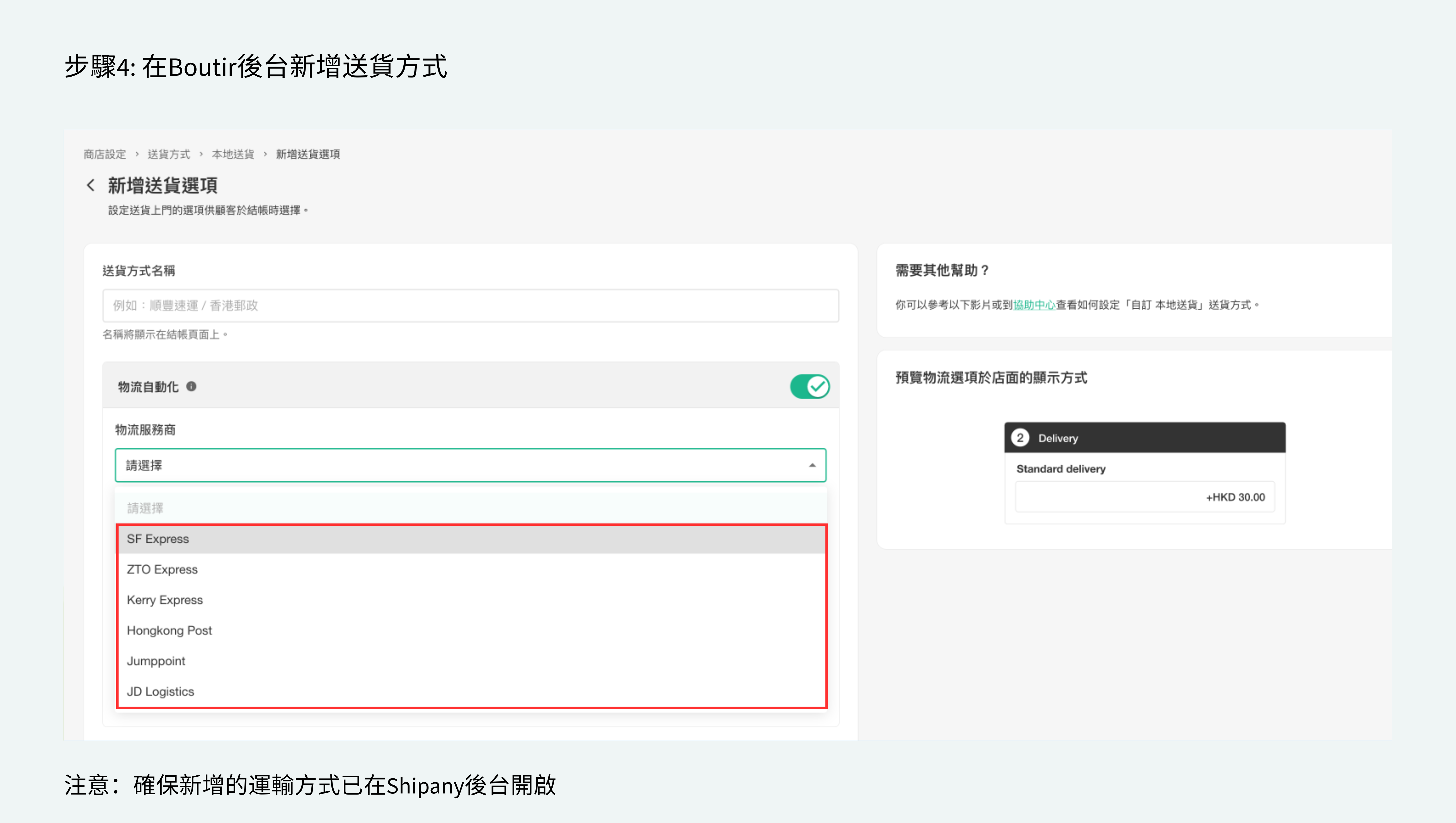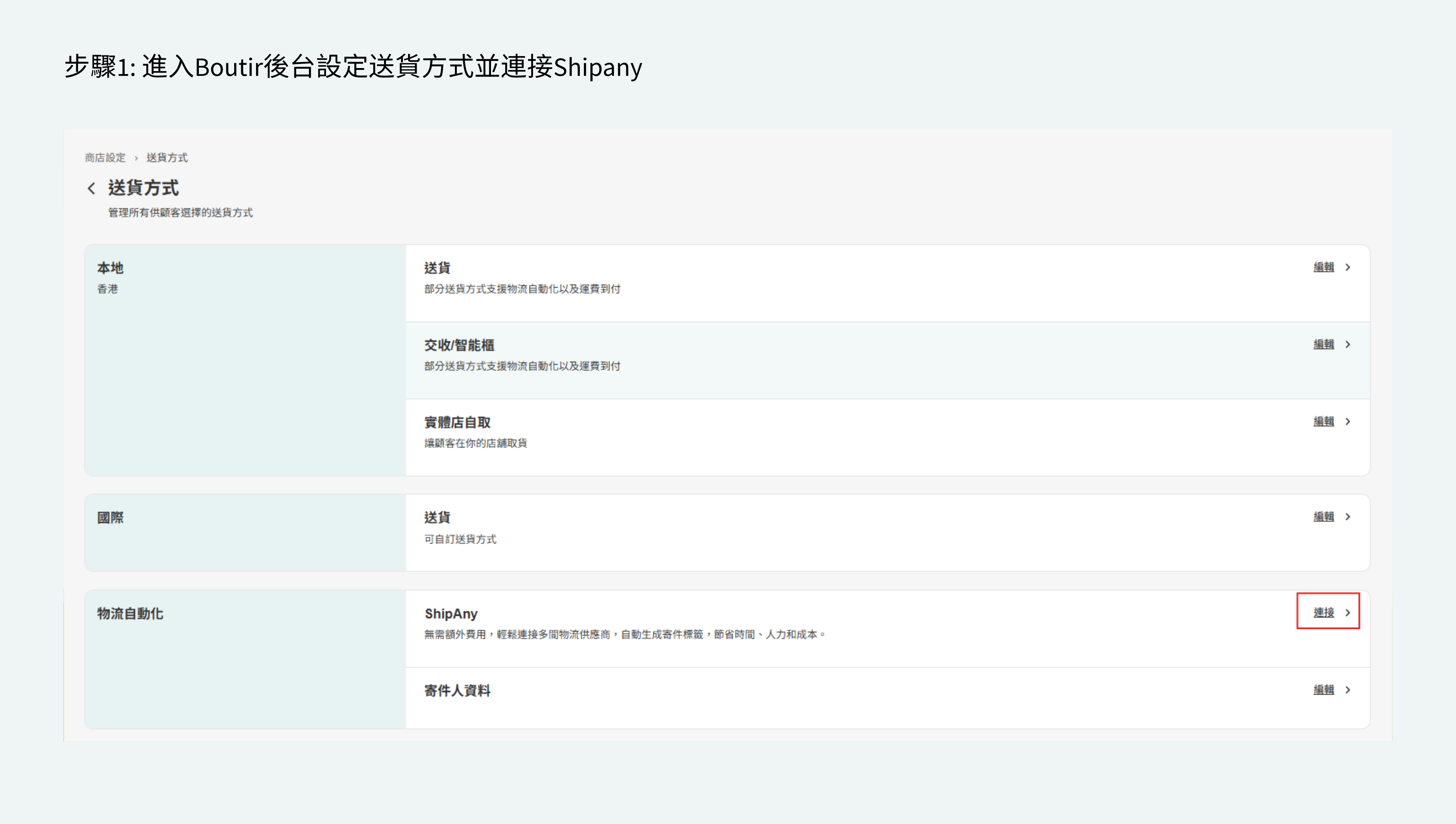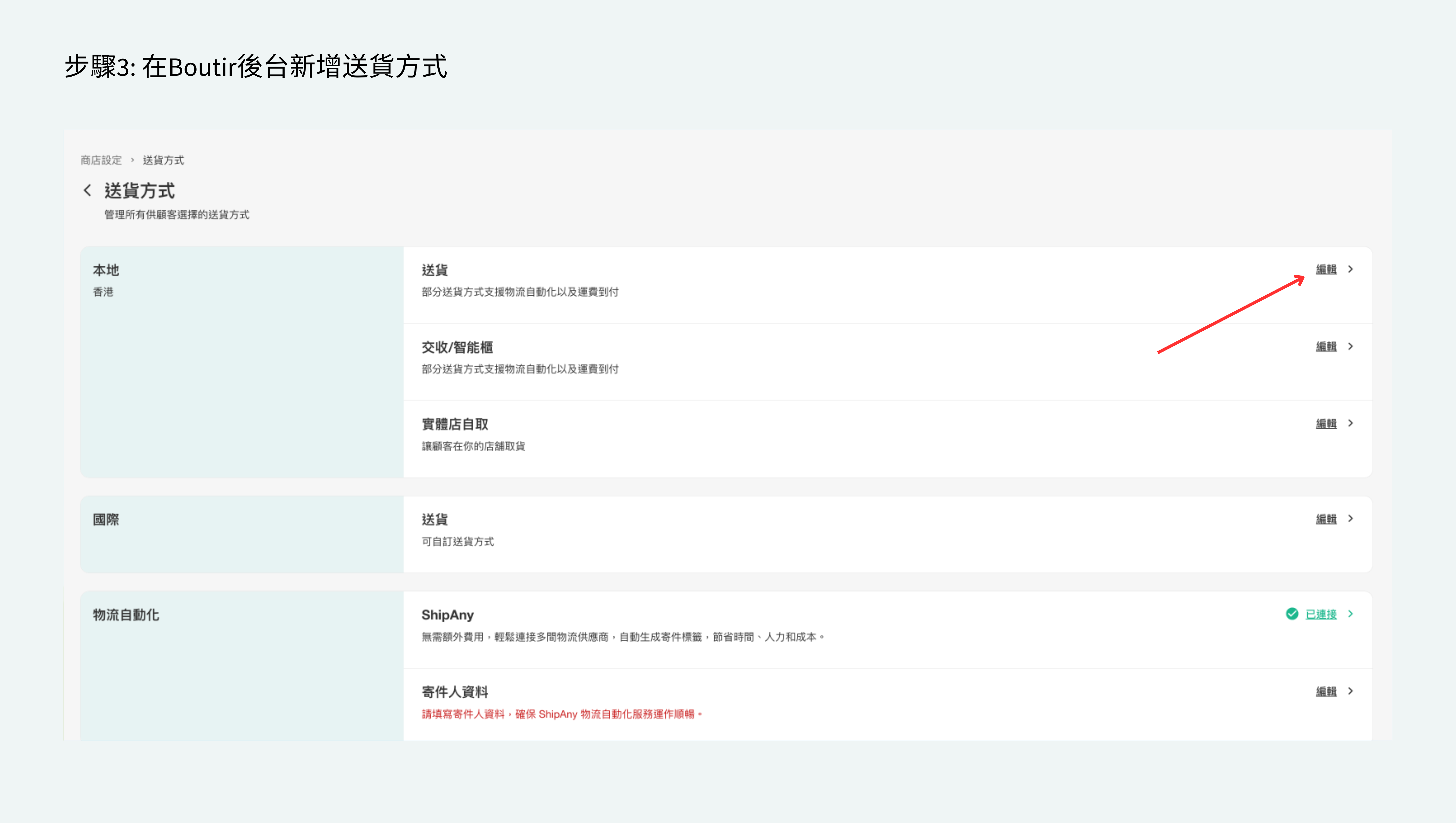 - 如你正使用舊版物流自動化,但有意轉成新版物流自動化,請聯絡 Boutir 客戶服務。