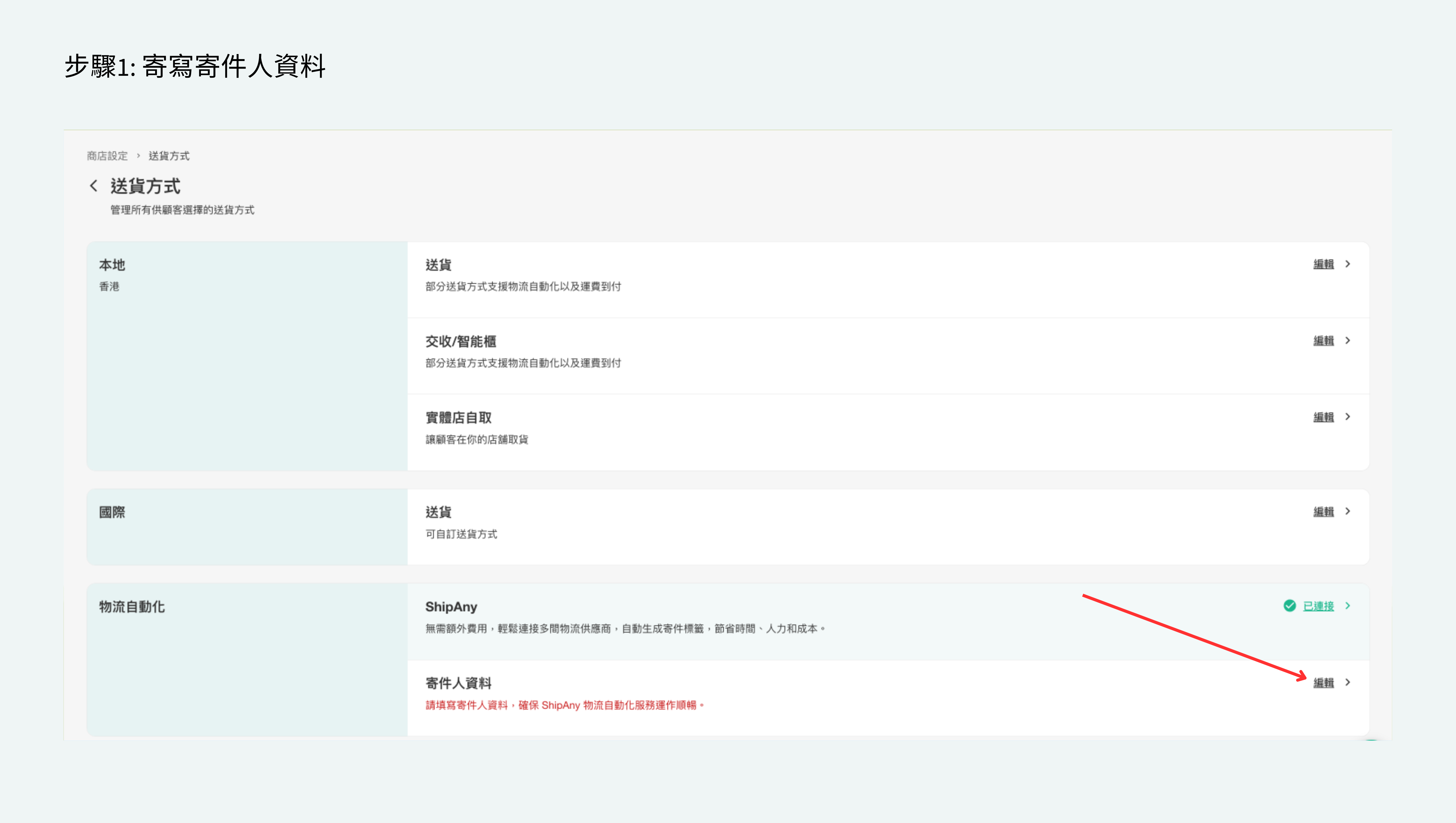- 設置「送貨方式」 (根據ShipAny帳戶內啟用物流方式)