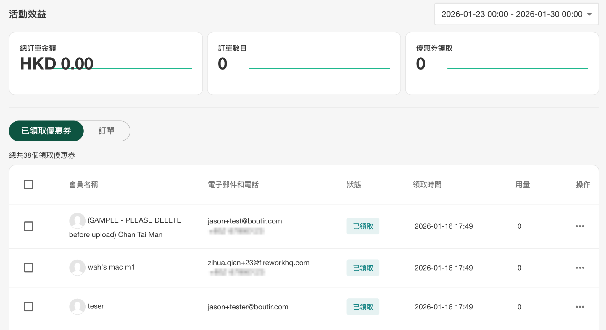 优惠券的成效表现亦更详尽,清楚呈现哪些顾客领取了优惠券却未进行消费。