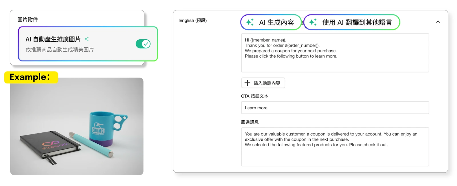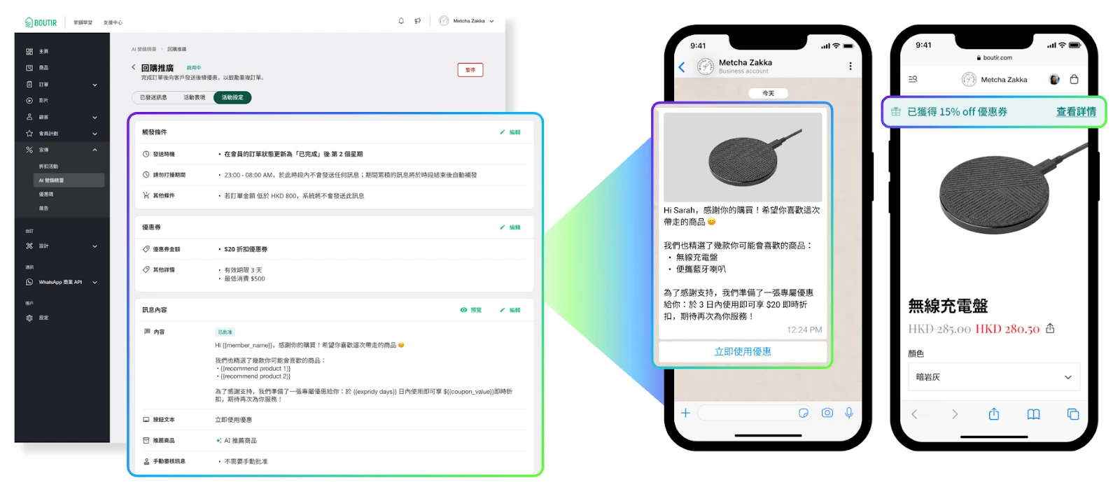 以人工智能及數據分析協助建立營銷活動,識別最佳營銷時機,自動發送訊息,轉化訂單。